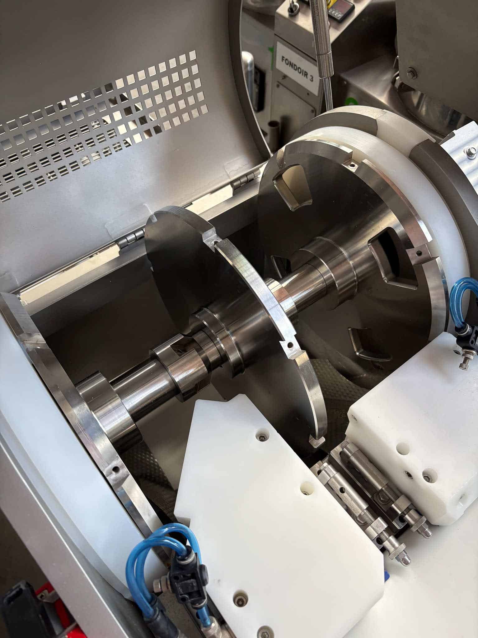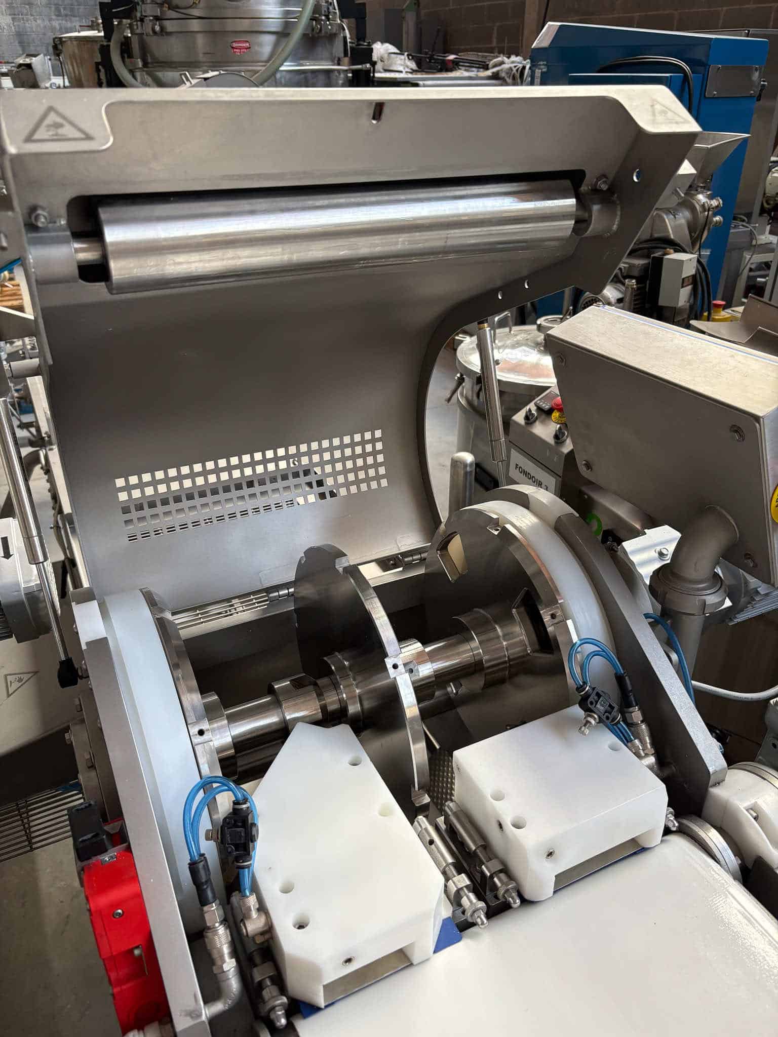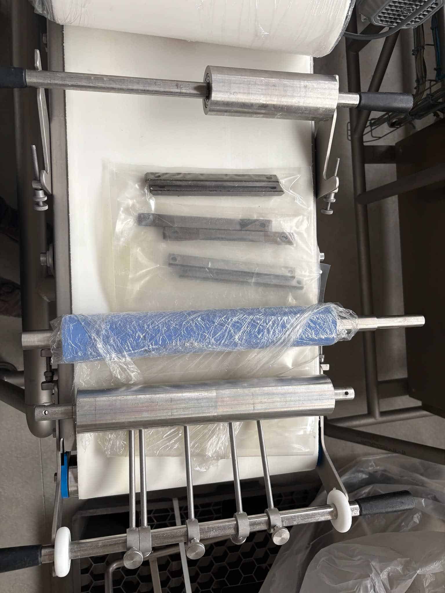– Option fournie avec la machine : guidage produits par peigne inox + rouleaux presseurs (voir photo)