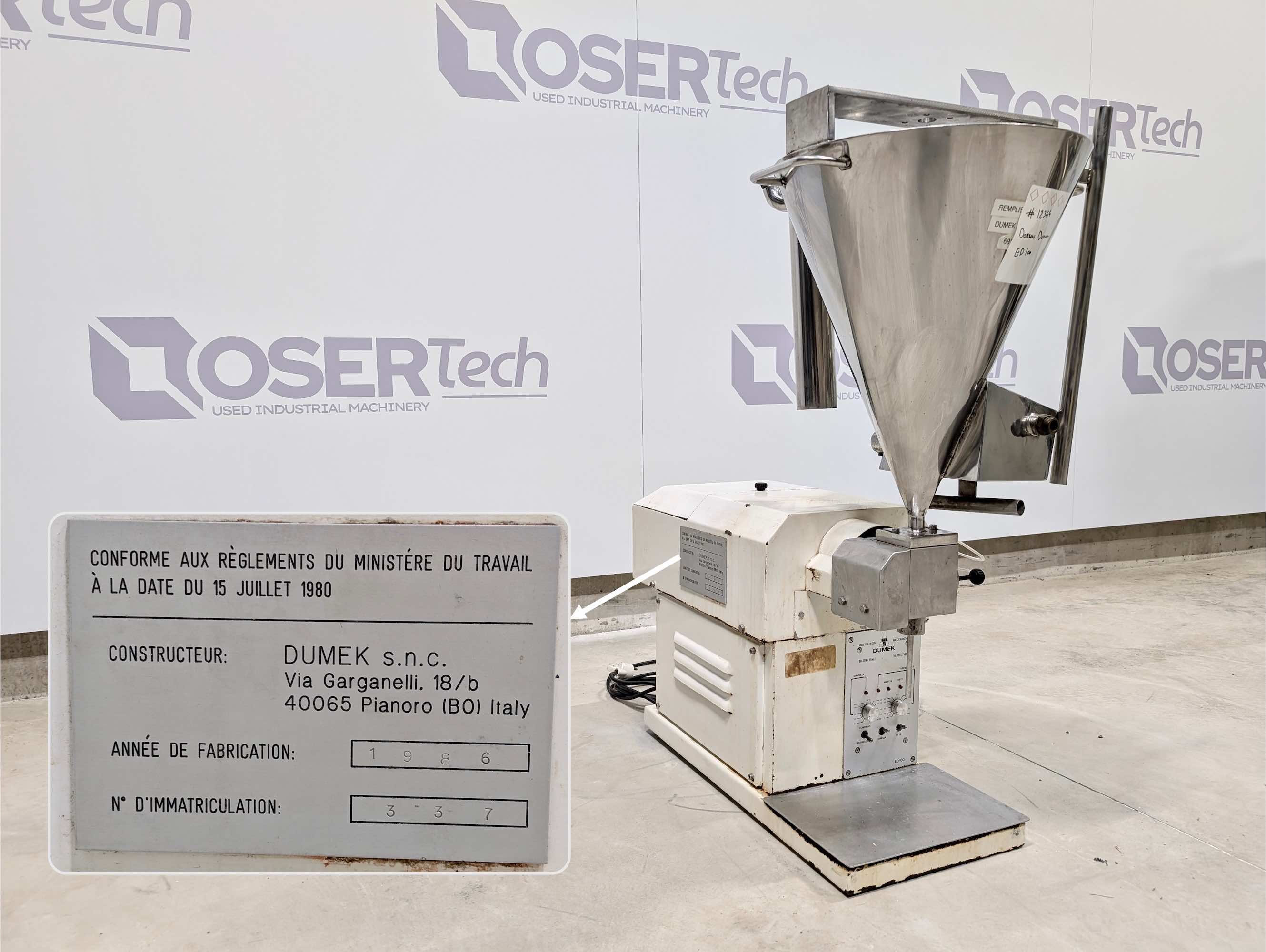Accueil > Machines industrielles disponibles > Machine de packaging / conditionnement > Peseuse / doseuse > Doseuse volumétrique > Dumek ED100 – Doseuse volumétrique